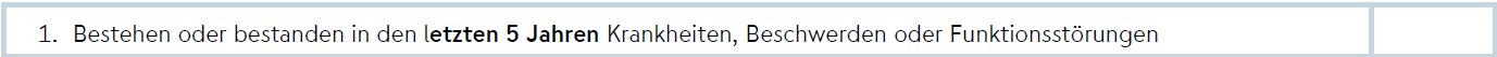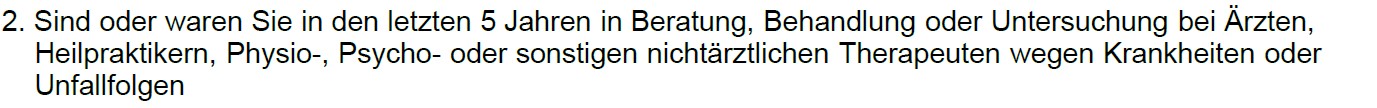 Erstgespräch vereinbarenDabei fragen die allermeisten Versicherer unabhängig ob Form a) oder b) die letzten 5 Jahre ab, die Allianz & Bayerische hingegen explizit die letzten 10 Jahre.